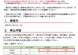 法人JA ネットバンクをご利用のお客さまへ 他行あての当日振込の停止に関するお知らせ