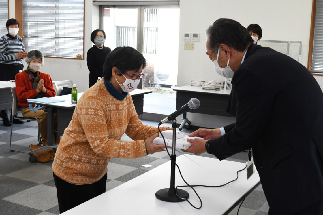 2023.01.27 トピックス 卒業する会員の方に河西常務から記念品が手渡される 記念撮影 1/26にさわやか大学の閉校式が行われ、30名の会員の方が卒業しました。卒業者には修了証書・記念品を贈呈しました。 また、厚生連の講師による「食品ロスをなくしてLet’s SDGs」と題した講座が行われました。