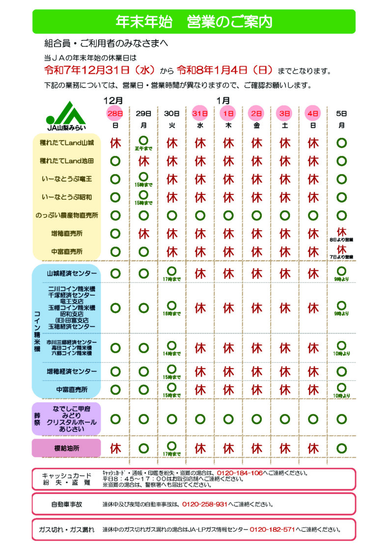 日頃より、当JAをご利用いただき、ありがとうございます。