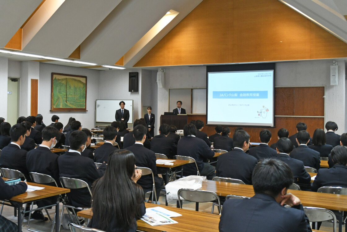 12月17日に山梨県立農林高等学校の1年生105名を対象に「金融教育」をテーマとした授業を実施いたしました。