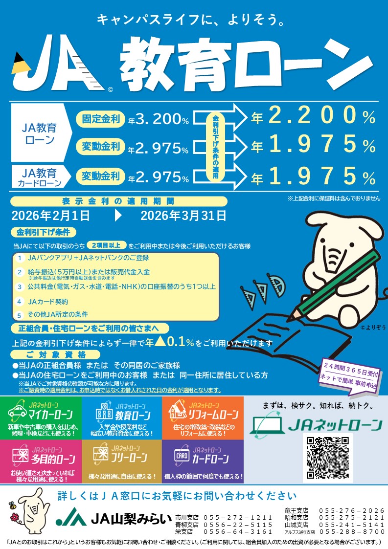 組合員への農業融資を始め、地域の皆さまの暮らしや、事業に必要な資金をご融資しています。また、地方公共団体・農業関連産業などへも融資し、地域経済の発展に貢献しています。さらに、(株)日本政策金融公庫等の融資の申し込みのお取り次ぎもしています。