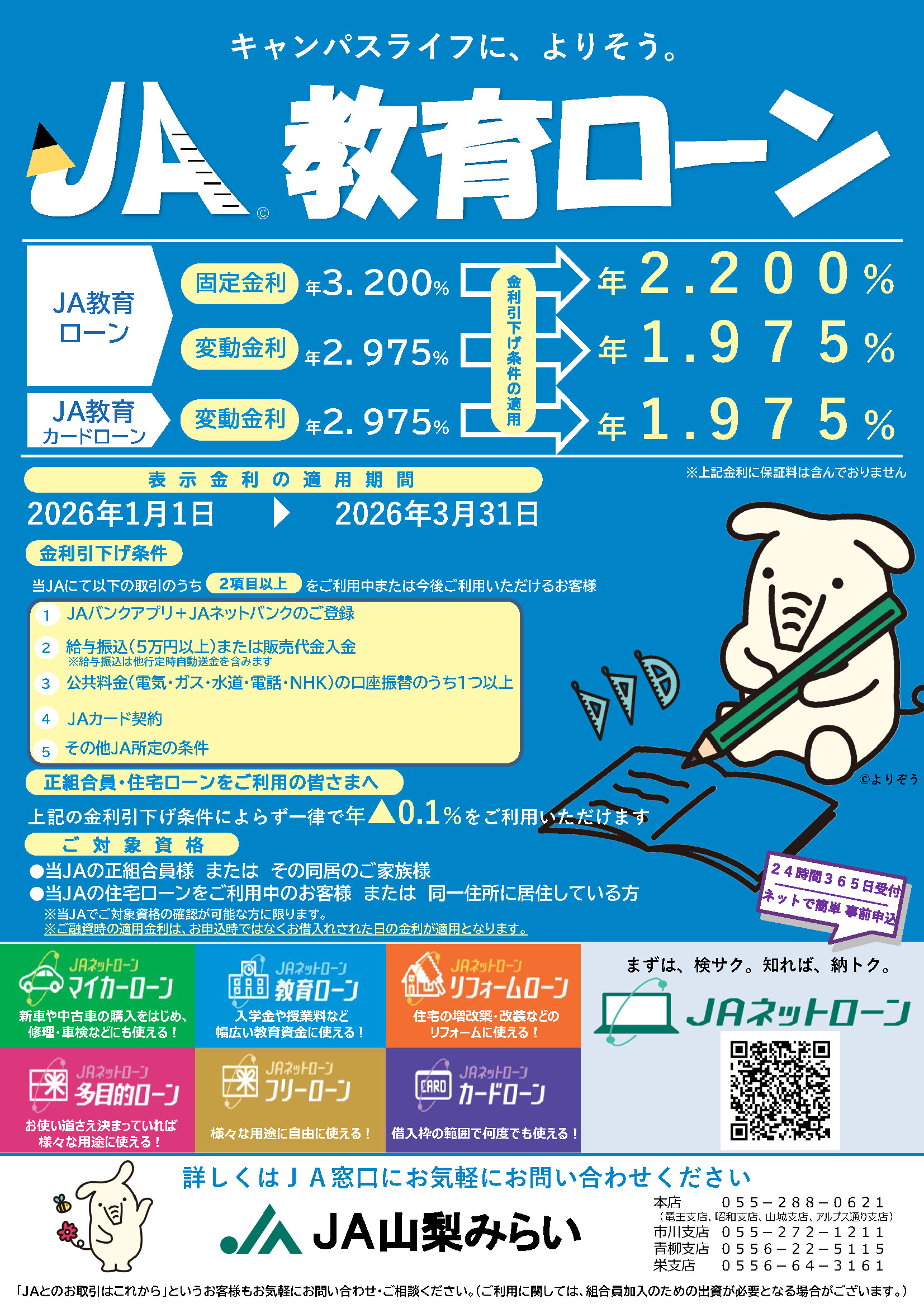 組合員への農業融資を始め、地域の皆さまの暮らしや、事業に必要な資金をご融資しています。また、地方公共団体・農業関連産業などへも融資し、地域経済の発展に貢献しています。さらに、(株)日本政策金融公庫等の融資の申し込みのお取り次ぎもしています。